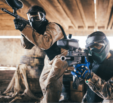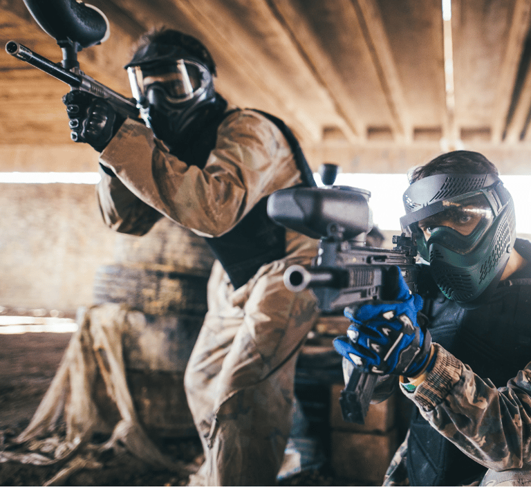 "Full pakke" inneholder alt du trenger for å spille paintball. Du får med en maske , markør, full tank med gass (til markøren), klesdrakt og en pod med ball. Du kan kjøpe flere baller om du har behov for det.